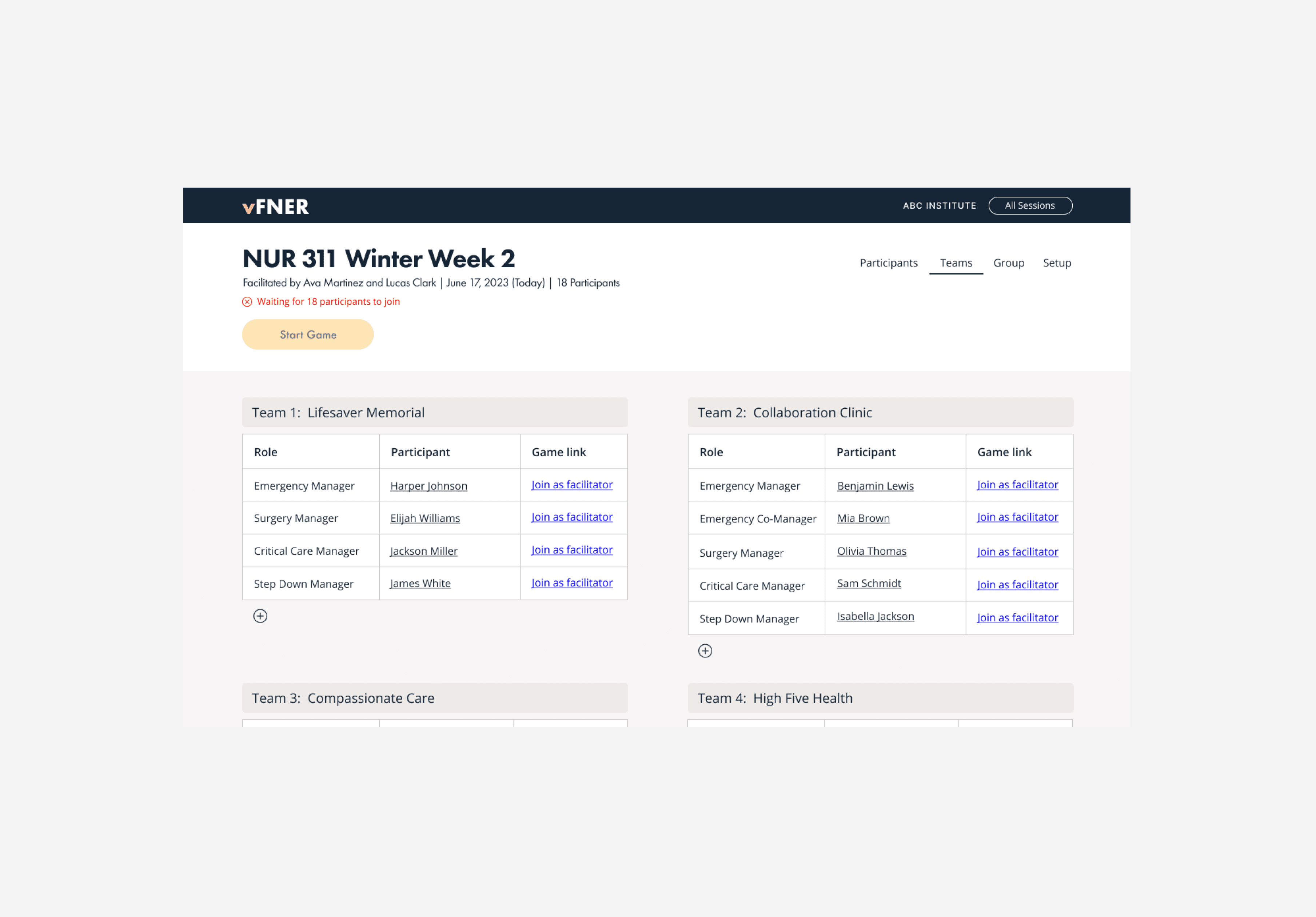 vFNER (virtual Fast-Paced Non-stop Emergency Room) is one of the most advanced simulation-based training programs in the world for developing systems thinking, cross-functional collaboration, and distributed leadership.