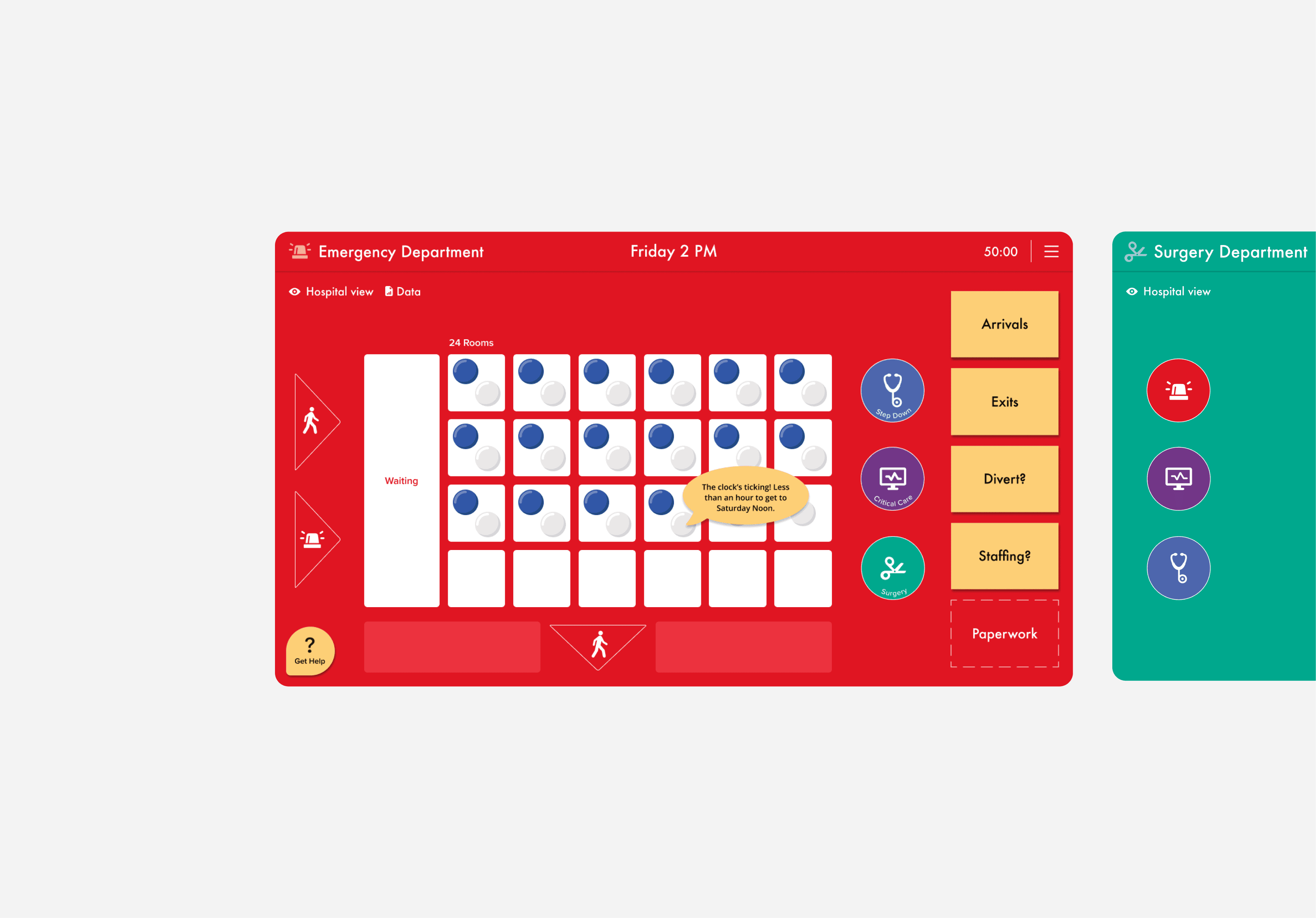 Designed to be fast, clear and deliberately intense — bold status colours, urgent audio cues, progressive disclosure — the experience creates real pressure without cognitive overload, while remaining fully GDPR/HIPAA-compliant, multi-language and zero-install.